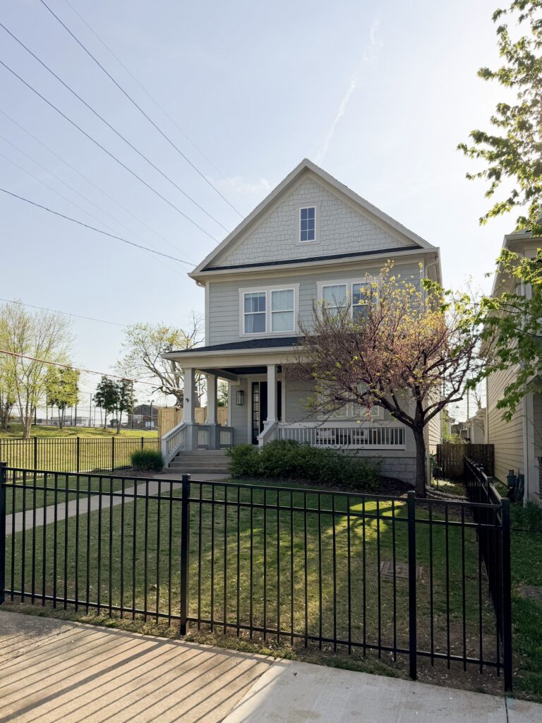 In the front yard, we installed a black aluminum fence to maintain visibility and curb appeal. This keeps the home feeling open and connected to the neighborhood while still defining the space.